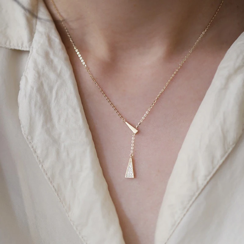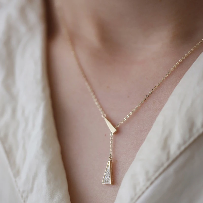 Женское Ожерелье в форме треугольника ANENJERY, регулируемое ожерелье из стерлингового серебра 925 пробы с цирконием, корейские аксессуары
