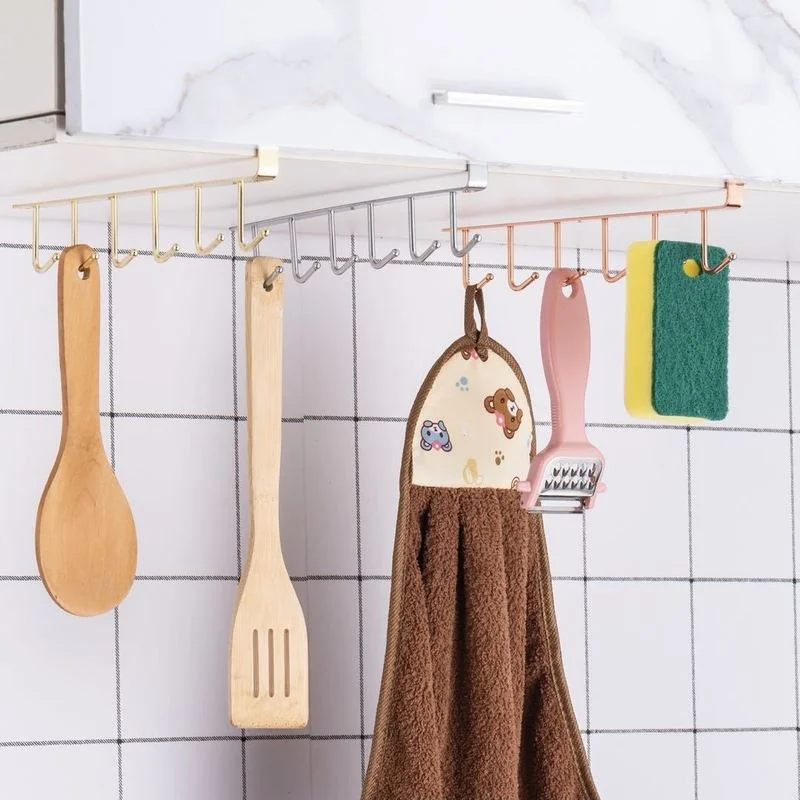 Новый железный 6 крючков полка для хранения Металл под полкой кружка чашка шкаф кухонный Органайзер подвесной держатель для шкафа крючок для шкафа