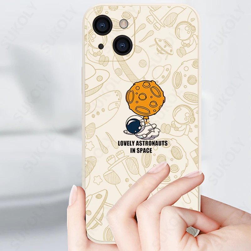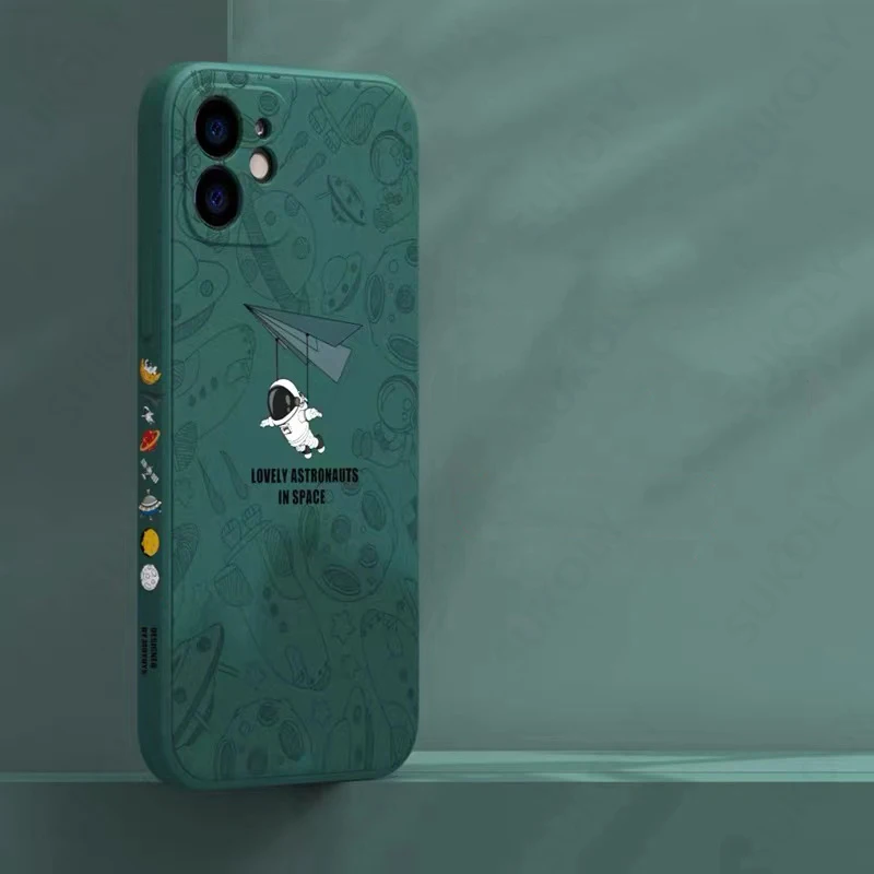 Чехол для iPhone 13 12 11 Pro MAX XS XR X 8 7 Plus SE 2020 милый астронавт бумажный самолет силиконовый ремешок ударопрочный чехол