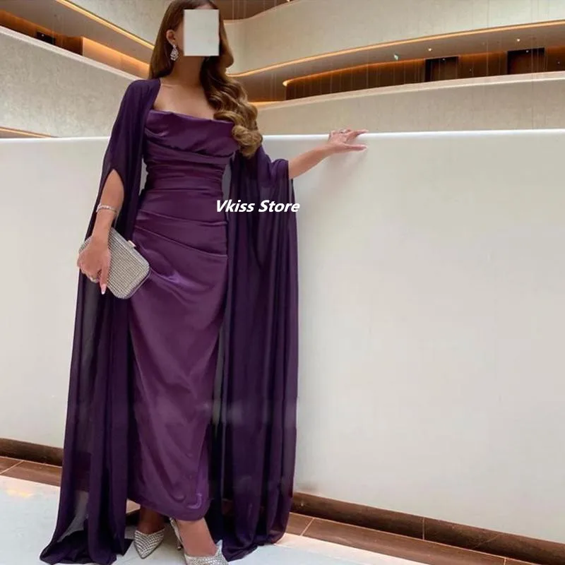 Вечерние платья-футляр до щиколотки 2022 с шифоновым запахом, без бретелек, с рюшами, атласное платье знаменитости, длинный рукав-накидка, бальное платье