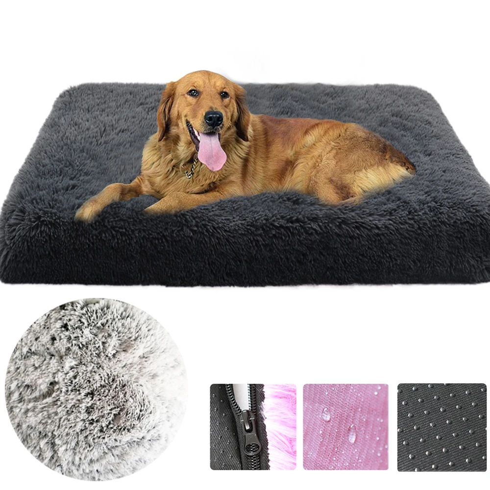 Длинная плюшевая кровать для собаки, кровать для кошки, матрас для домашнего питомца со съемным моющимся покрытием, коврик из пены с памятью, коврик для собаки с нескользящим дном