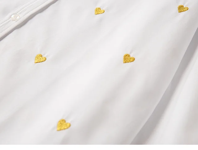 Женская рубашка с вышивкой в виде сердца, летняя Классическая хлопк...