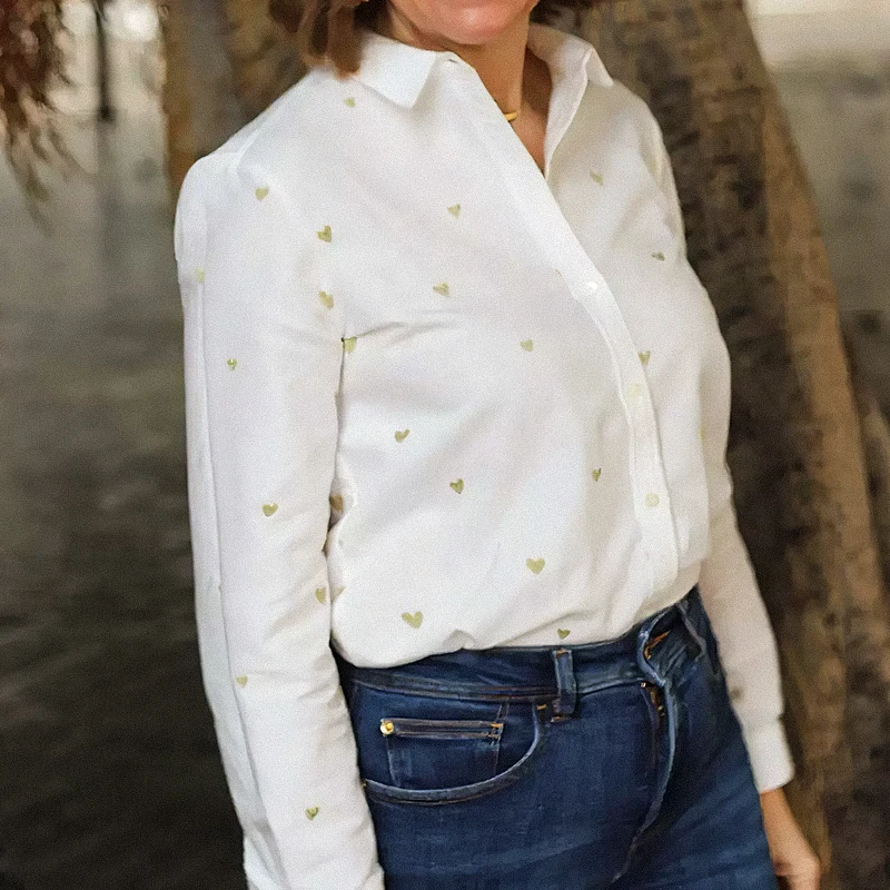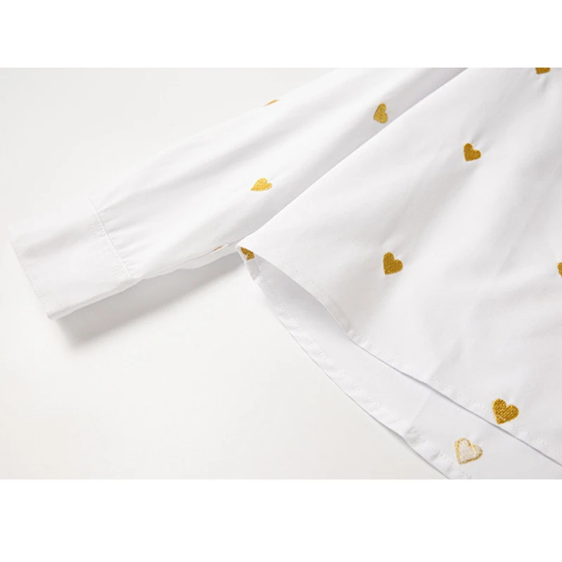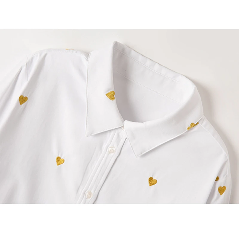 Блузка женская с вышивкой в виде сердца, элегантная повседневная рубашка с длинным рукавом и отложным воротником, топ в стиле ретро, весна-осень