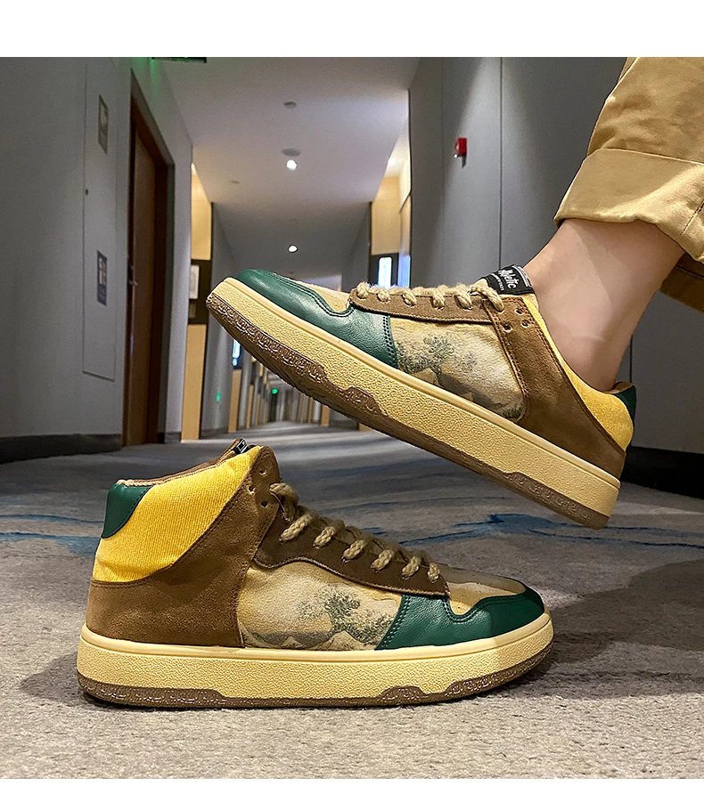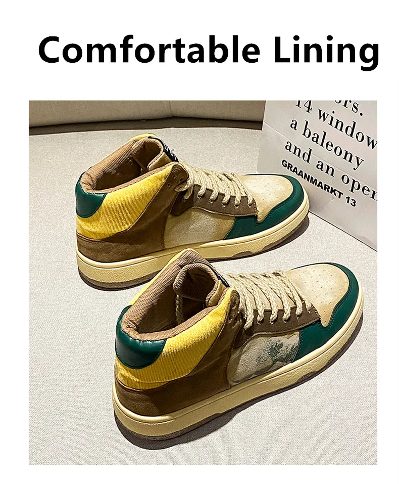 Мужские парусиновые кроссовки с высоким берцем в стиле ретро на платформе; Мужская обувь для катания на коньках; Дизайнерская мужская обувь с принтом граффити; Кроссовки; chaussures vulcanisées