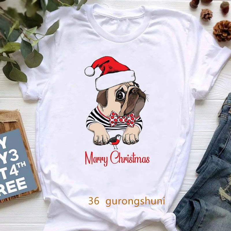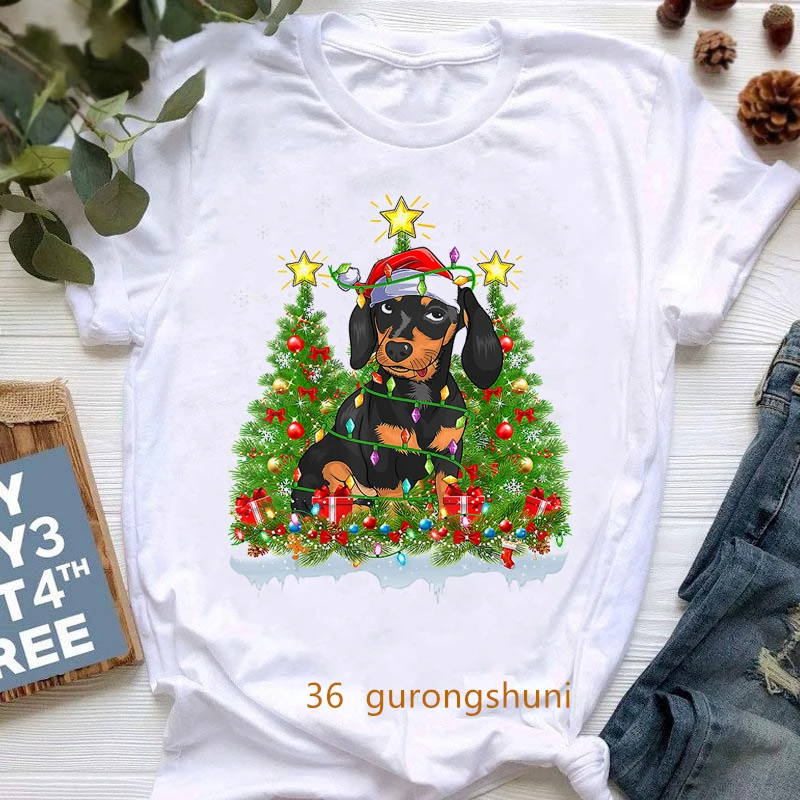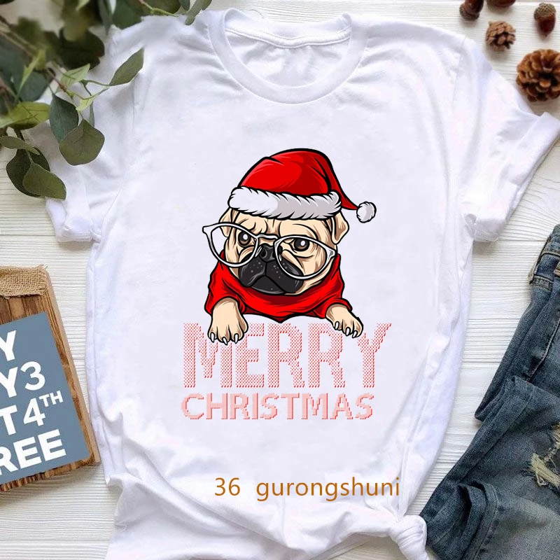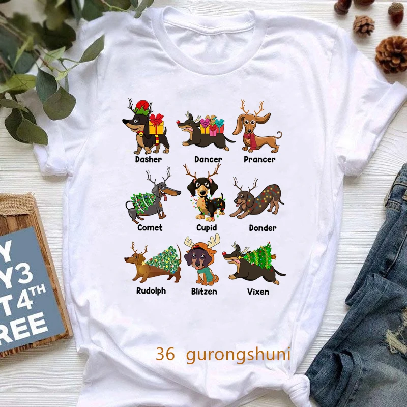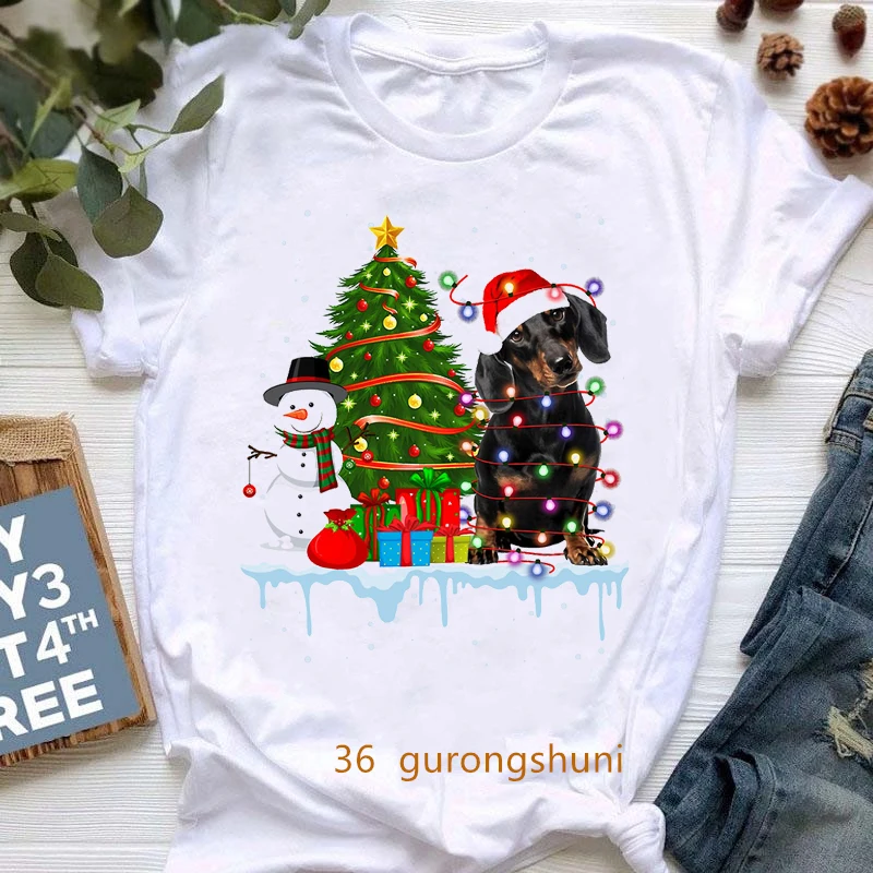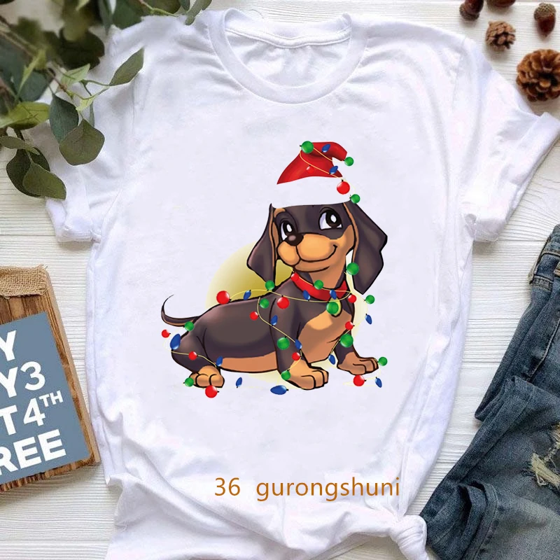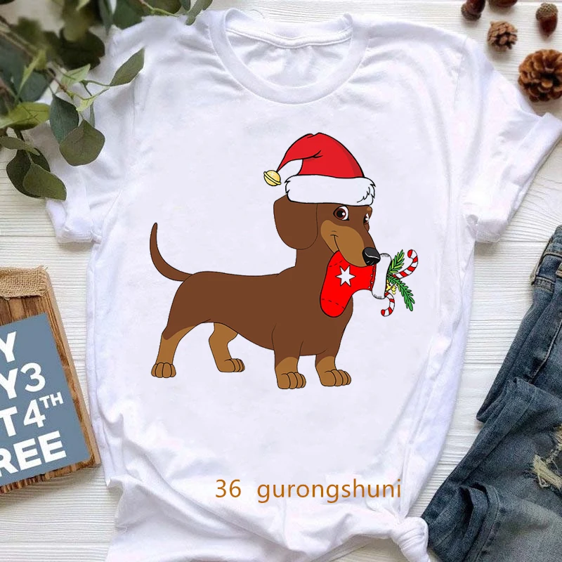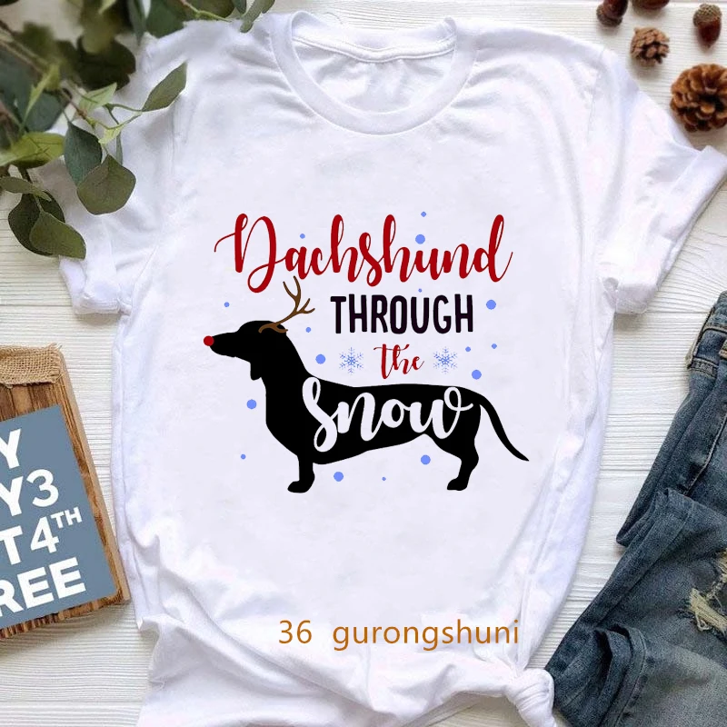 Женская футболка Dachshundsмопсафранцузского бульдога с принтом животных, рубашка в стиле Харадзюку, футболка с надписью "Merry Christmas Dog Lover", женская летняя футболка
