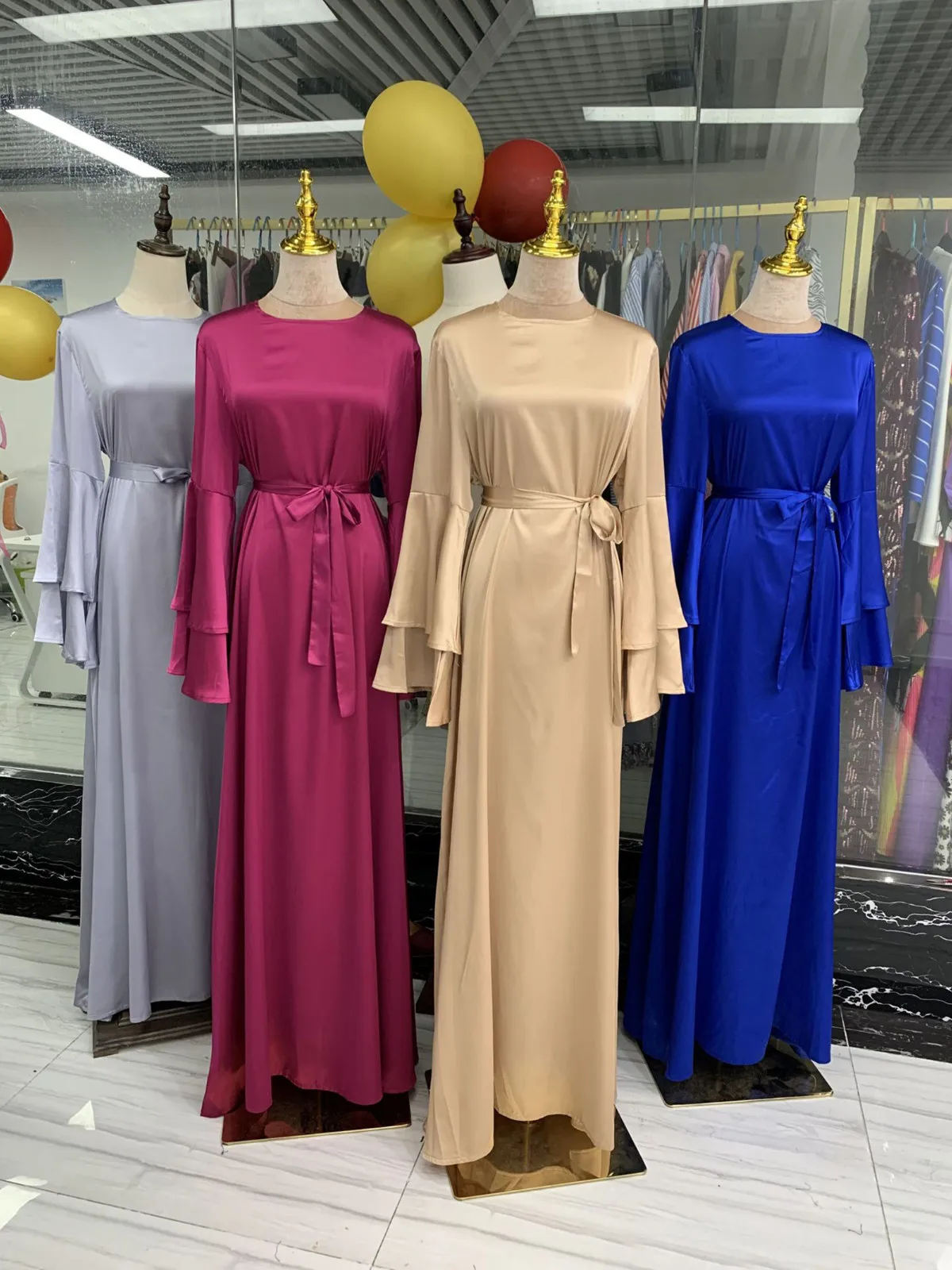 Мусульманское женское платье абайя, модное сатиновое платье хиджаб ...