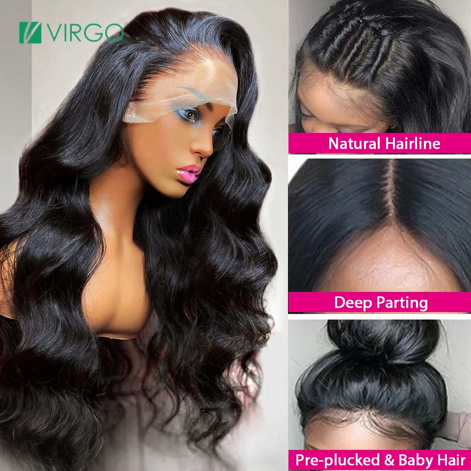 Virgo 13x4 HD прозрачные кружевные передние человеческие волосы парики для женщин объемная волна 28 30 32 дюймов Волнистые кружевные передние волосы предварительно выщипанные Remy парик
