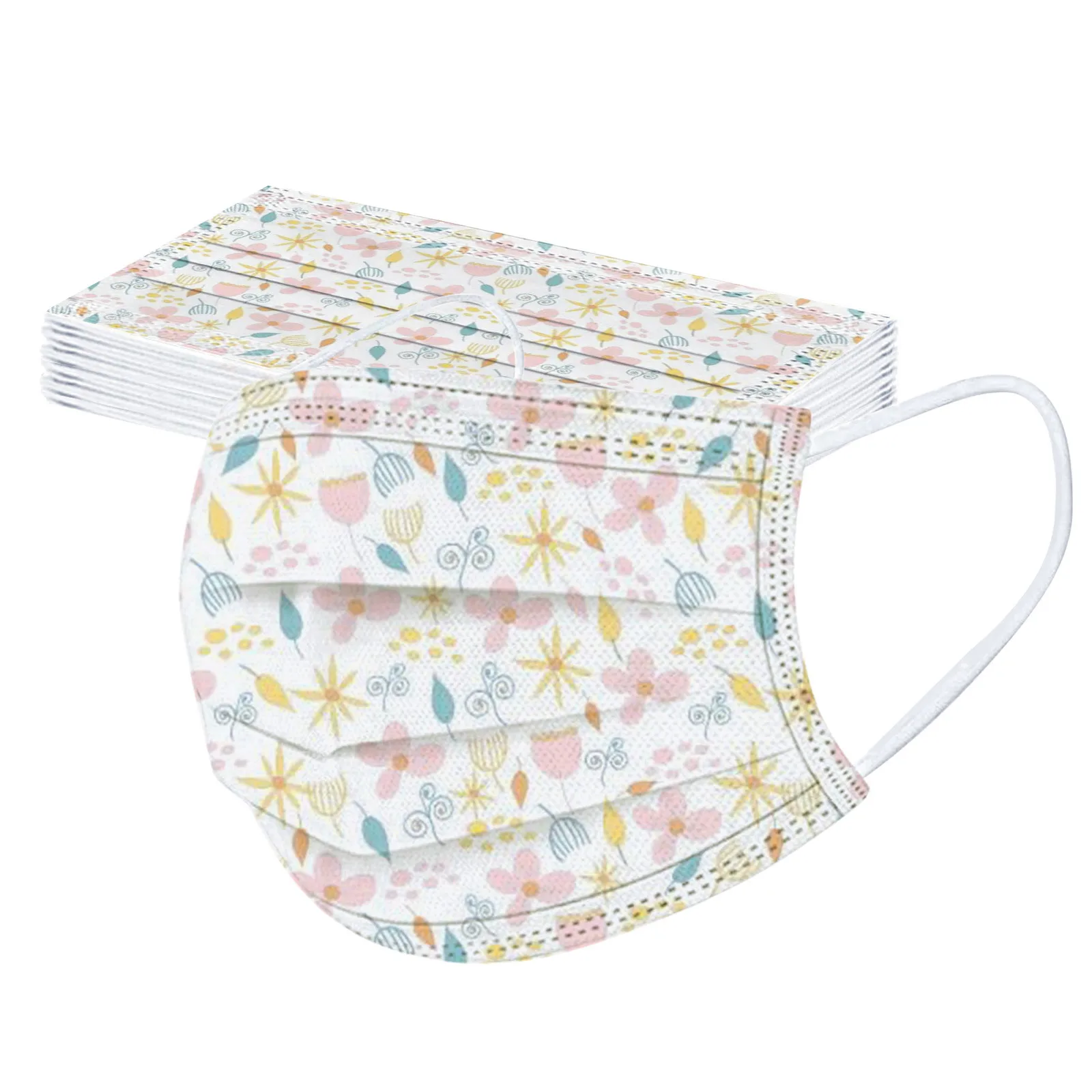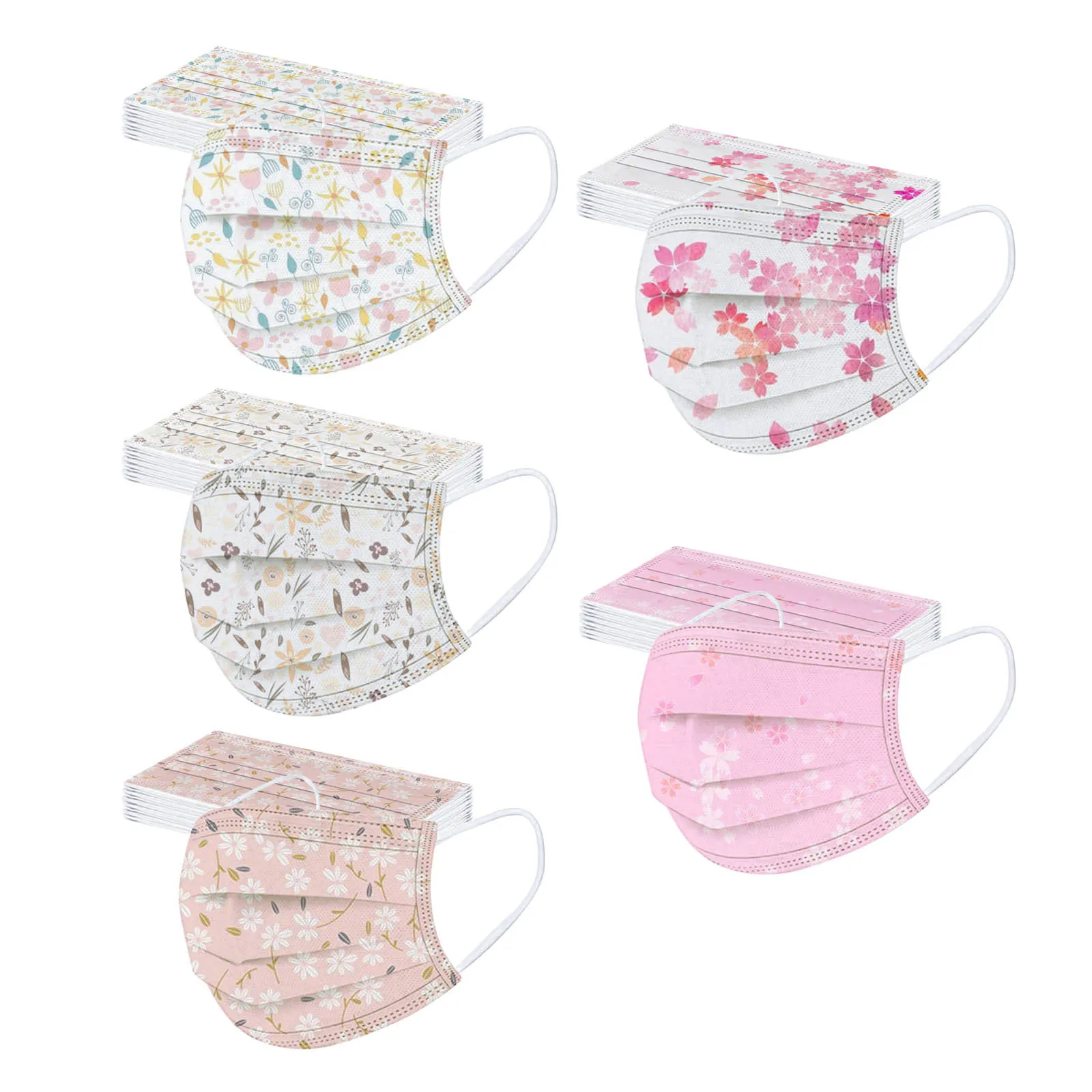 50 шт. маски для лица для взрослых женщин мужчин цветная Цветочная печатная одноразовая маска для рта 3-слойная маска для лица с ушными петлями маска для Хэллоуина