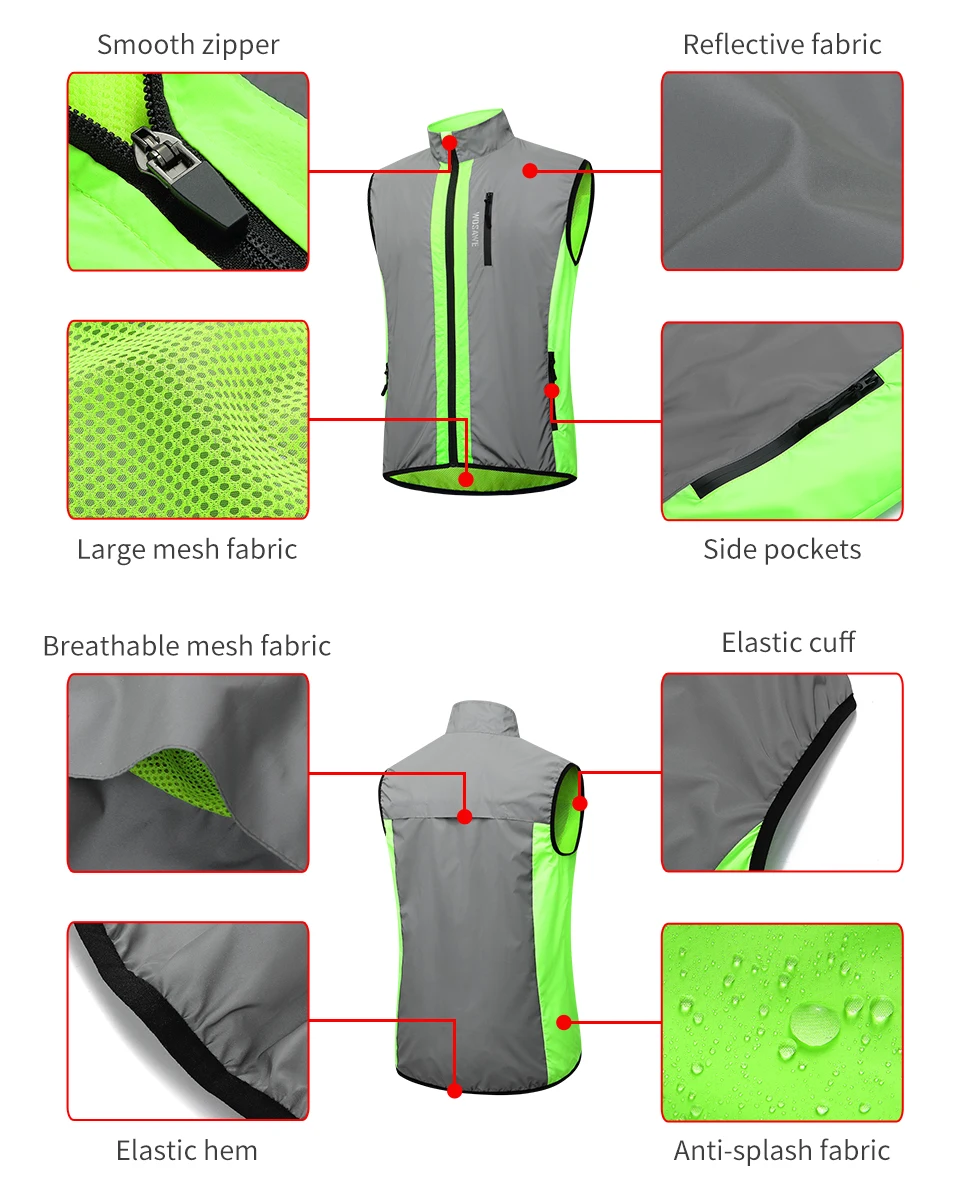 Велосипедный жилет WOSAWE с высокой видимостью, ветровка, ветрозащи...