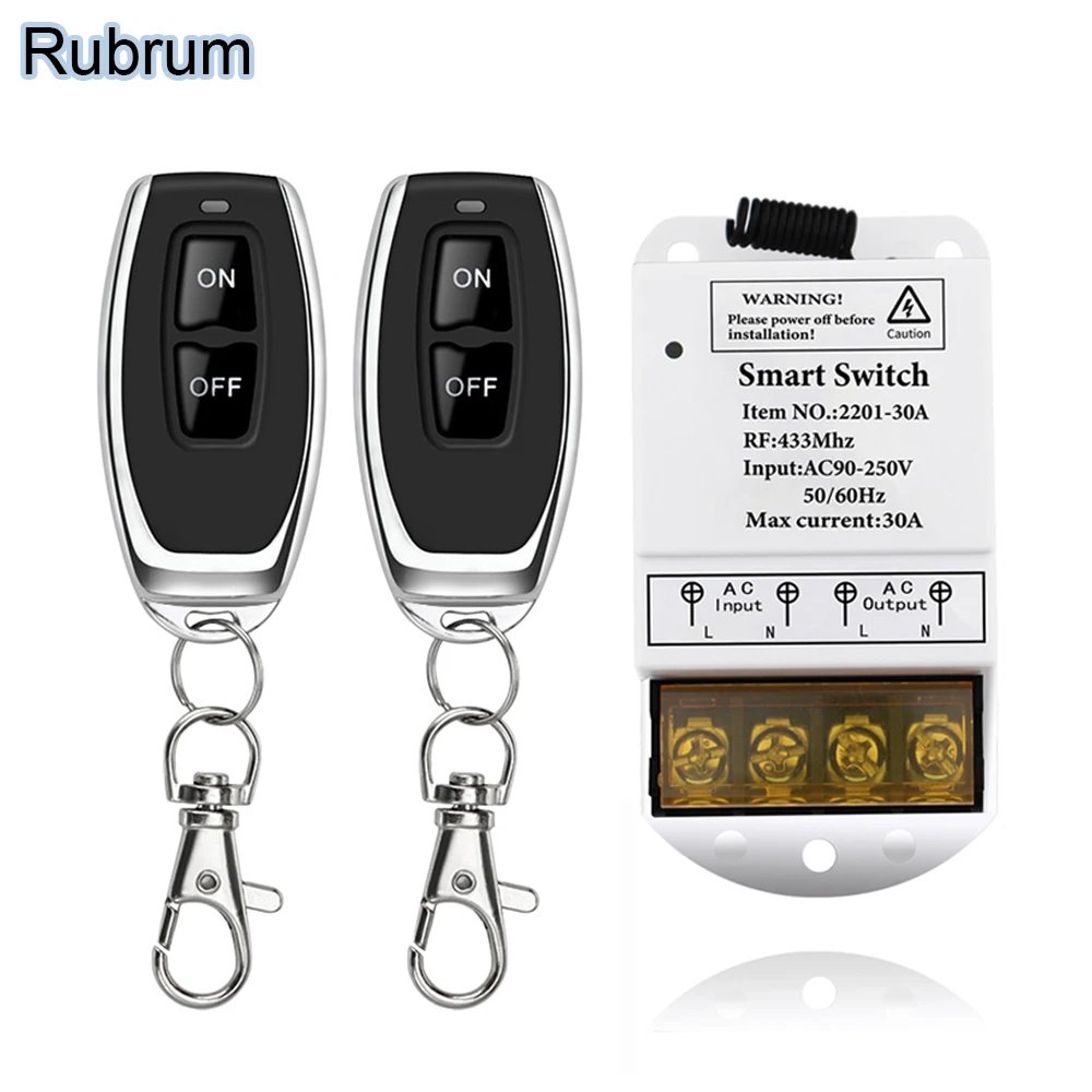 Беспроводной дистанционный переключатель Rubrum, 433 МГц, 110 В переменного тока, 220 В, 30 А, 1 канал, Радиочастотное реле, дистанционное управление, световые переключатели для систем безопасности водяного насоса