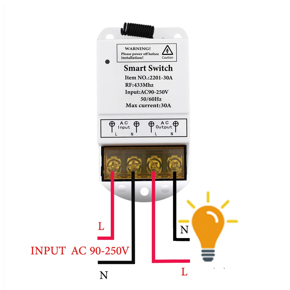 Номер моделиSmart Home AC 90-250V 30A 1 Way Remote Control High Power Switch 4000W