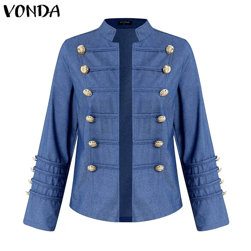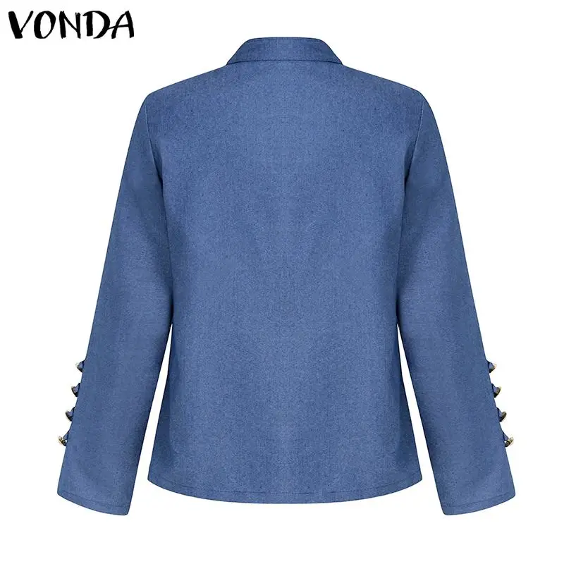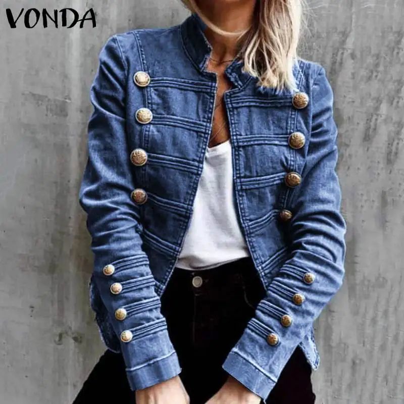 VONDA Весна 2022 женское Элегантное повседневное двубортное пончо свободное однотонное пальто на пуговицах с длинным рукавом Повседневные уличные джинсовые куртки