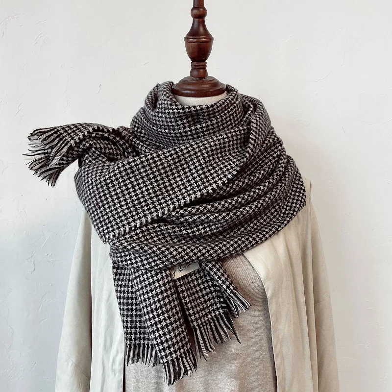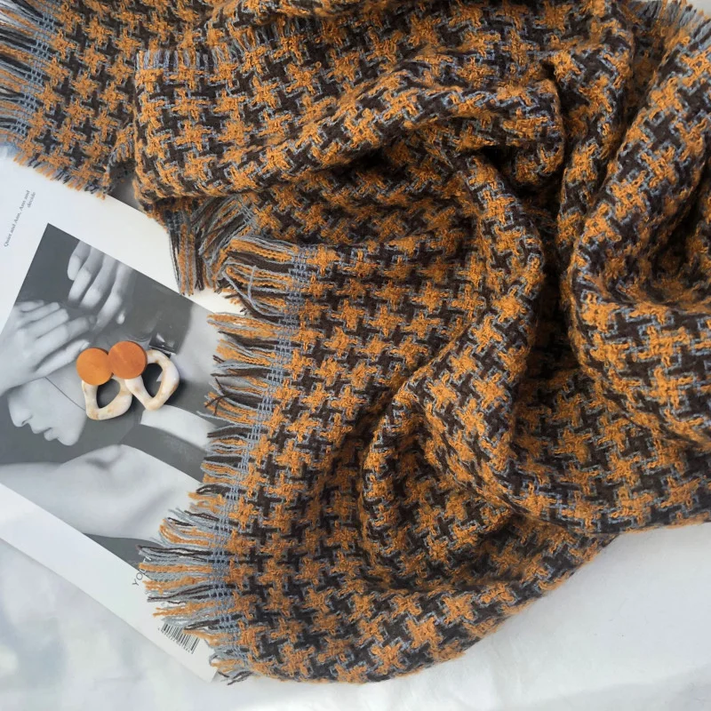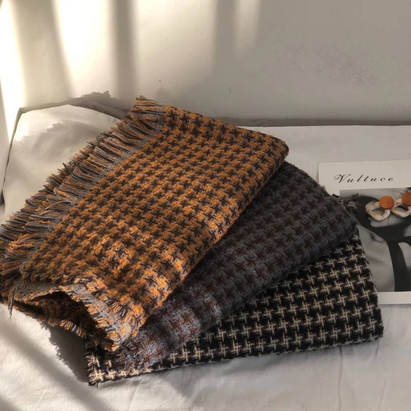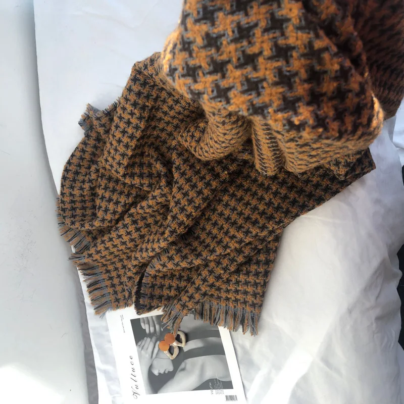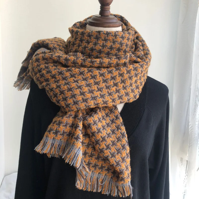 Корейский модный вязаный осенне-зимний женский шарф тёплые кашемировые шарфы твида шали Роскошная брендовая Шейная бандана из пашмины