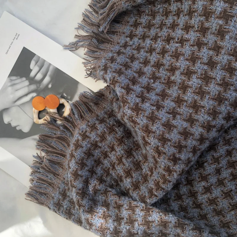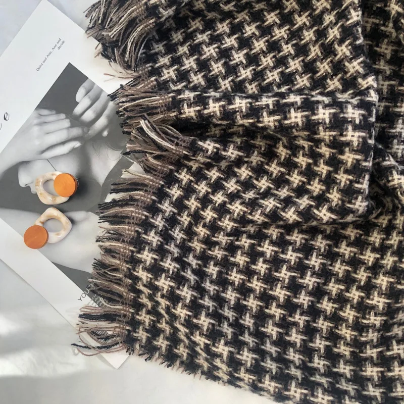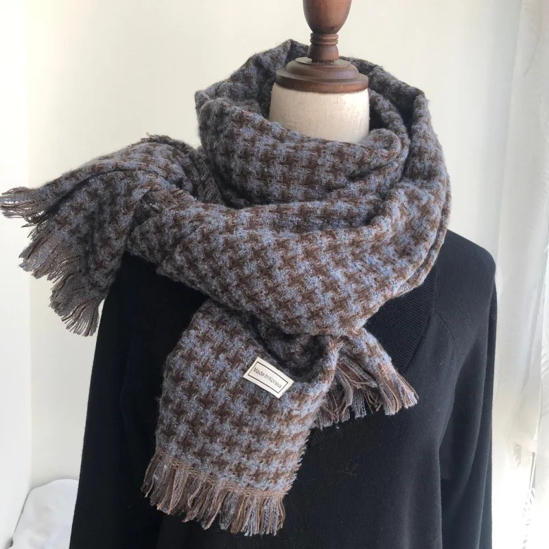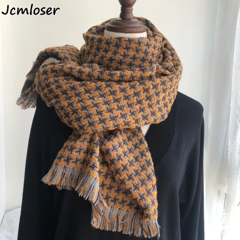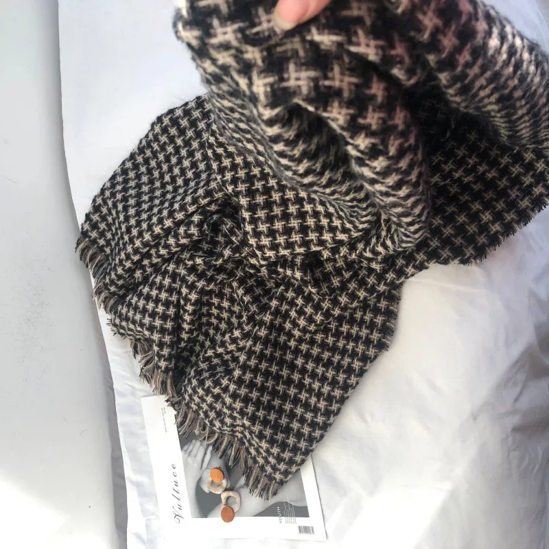 Корейский модный вязаный осенне-зимний женский шарф тёплые кашемировые шарфы твида шали Роскошная брендовая Шейная бандана из пашмины