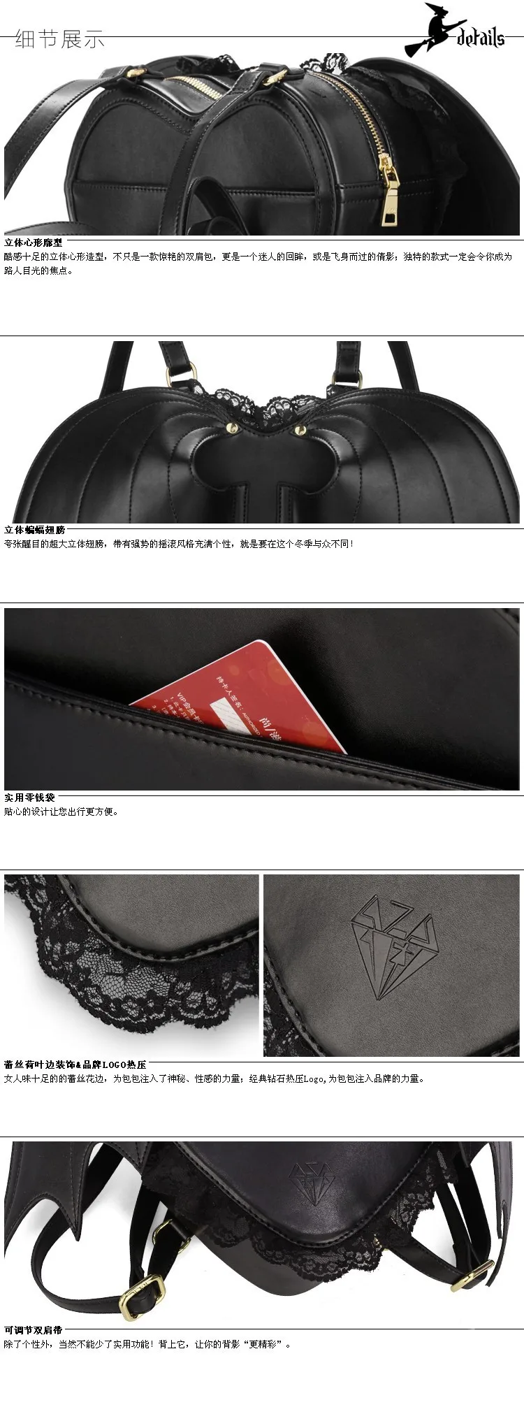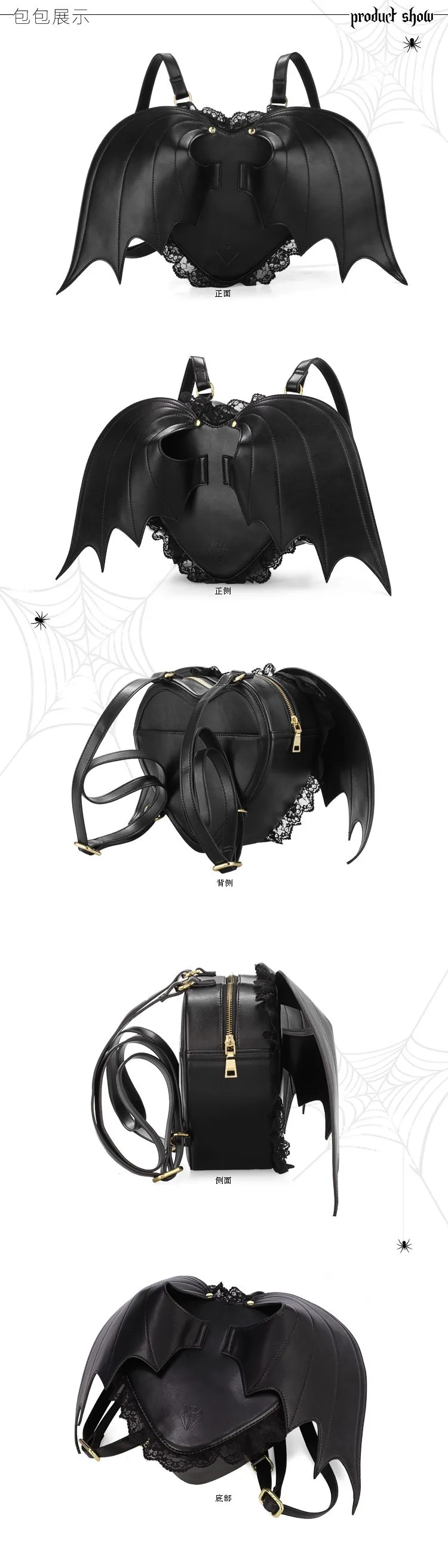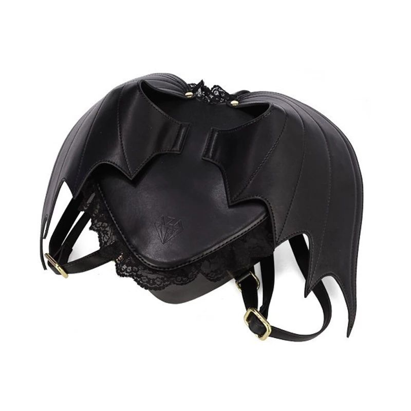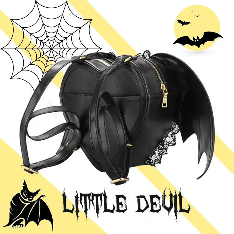 Рюкзак в стиле Харадзюку, Готическая Лолита, Черная кружевная сумка в форме сердца, с крыльями дьявола, летучая мышь, уличный винтажный рюкзак, модная школьная сумка для студентов