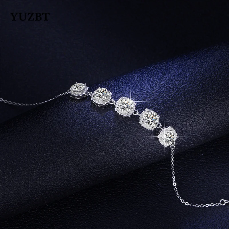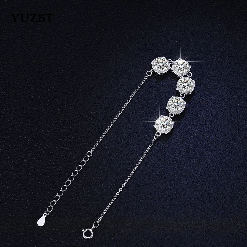 YUZBT, Новое поступление, женский браслет из натурального бриллианта 5 карат, Муассанит, классические браслеты из стерлингового серебра и платины
