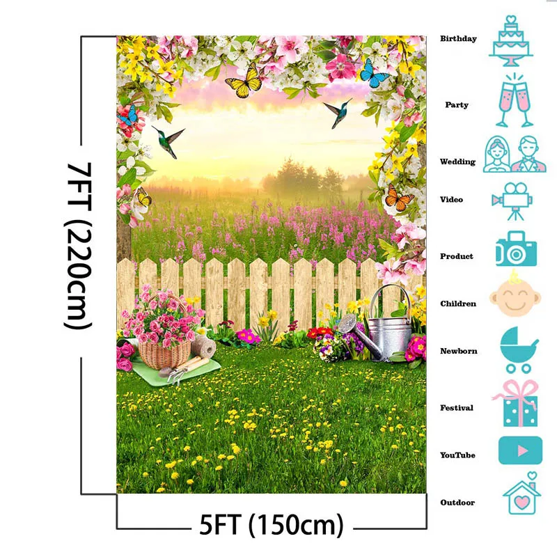 Фон для фотосъемки с изображением цветов, абстрактных бабочек и цветов