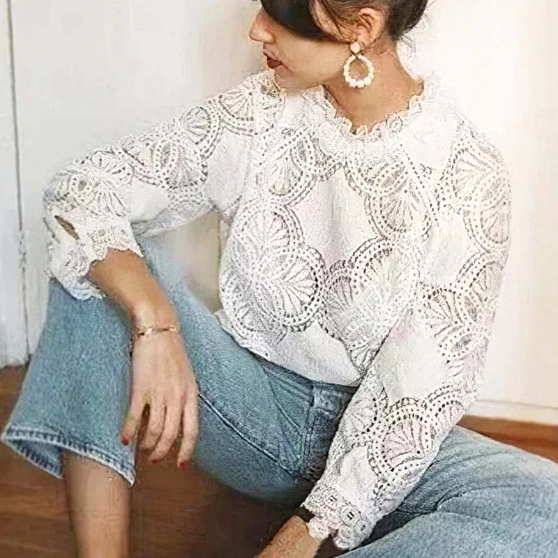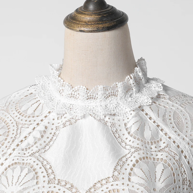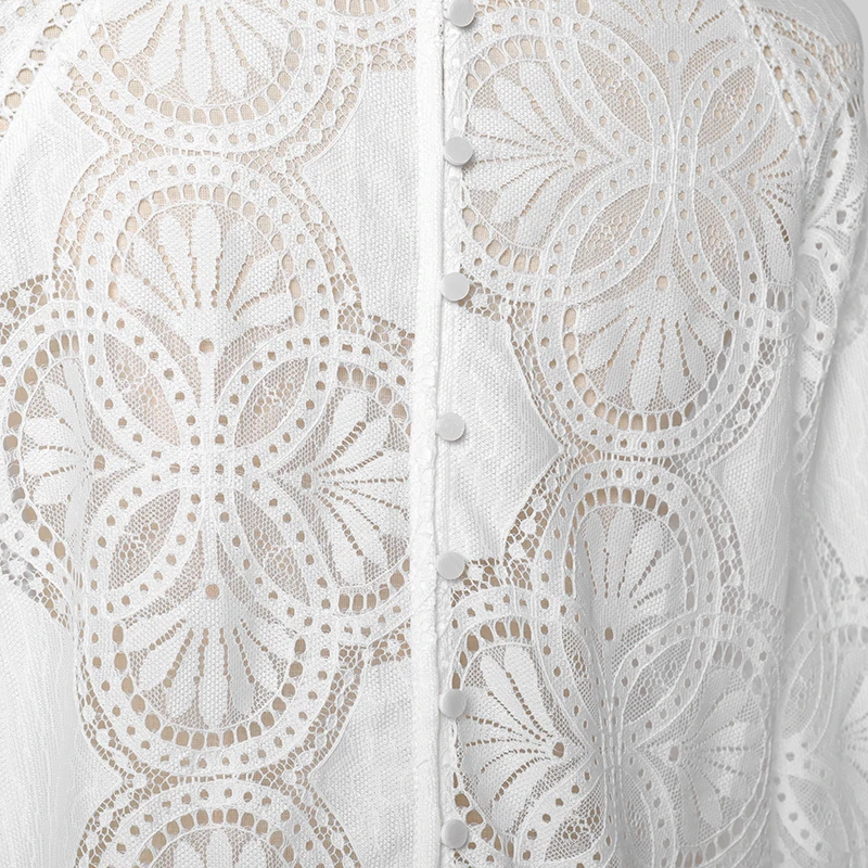 Кружевная Лоскутная белая рубашка, элегантная женская одежда с воротником-стойкой и длинным рукавом, ажурная блузка, винтажные шикарные женские блузки