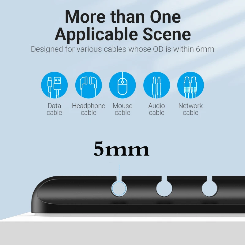 Его стол управления кабелем разработан с диаметром 6 мм, наш ежедневный USB кабель все может быть использован. Вы можете использовать этот органайзер для шнура для организации грязных кабелей, таких как офисный стол, загроможденные столешницы, прикроватные столы и внутренние стены автомобиля, что делает повседневную жизнь немного проще и более организованной.