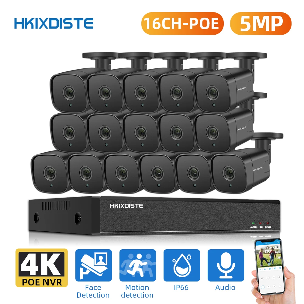Система видеонаблюдения AI Face 5MP POE, 16-канальный сетевой видеорегистратор POE, NVR с записью звука, наружная IP-камера, система видеонаблюдения XMEYE