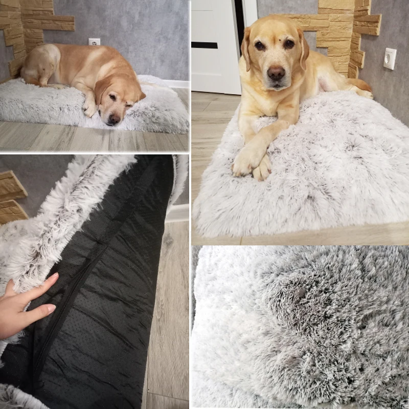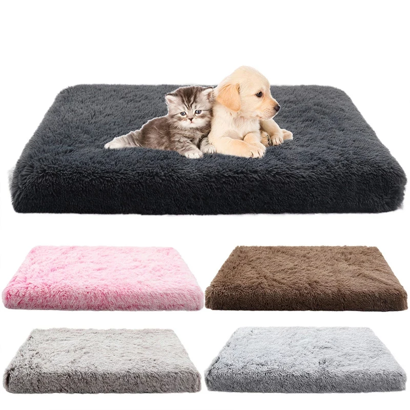 Длинный плюшевый диван-кровать для собаки со съемным моющимся покрытием, коврик, подушка для больших собак, квадратная подушка, одеяло, мягкий флисовый коврик для щенка