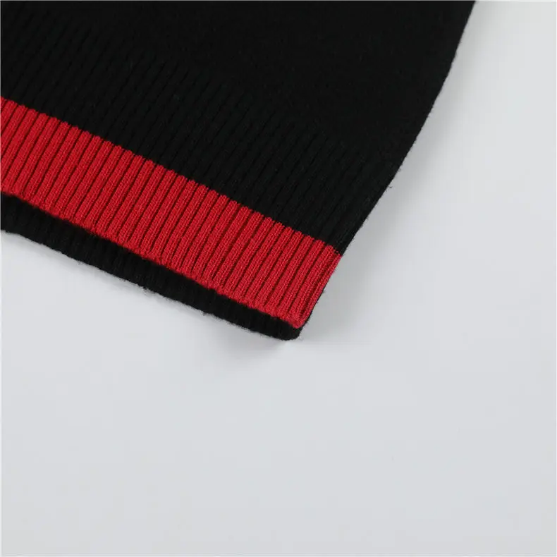 Свитер высокого качества, Мужской пуловер, Модный облегающий свитер, трикотажный джемпер, Мужской трикотажный топ с нашивками, свитшот для мальчиков, красный, черный