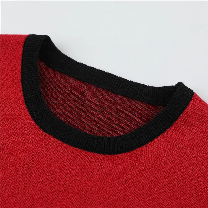Мужской свитер высокого качества, Модный пуловер, тонкий свитер, трикотажный джемпер, Мужской трикотажный топ для работы, свитер для мальчиков, красный, черный