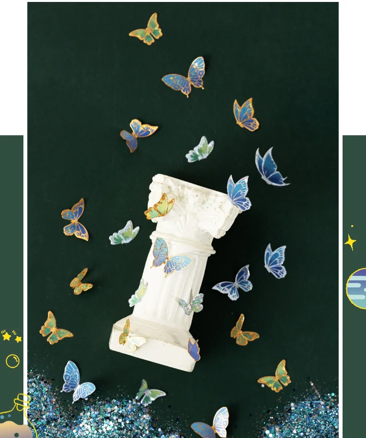 Лазерные наклейки в стиле Ins с бронзовыми бабочками и китами, 8 ви...