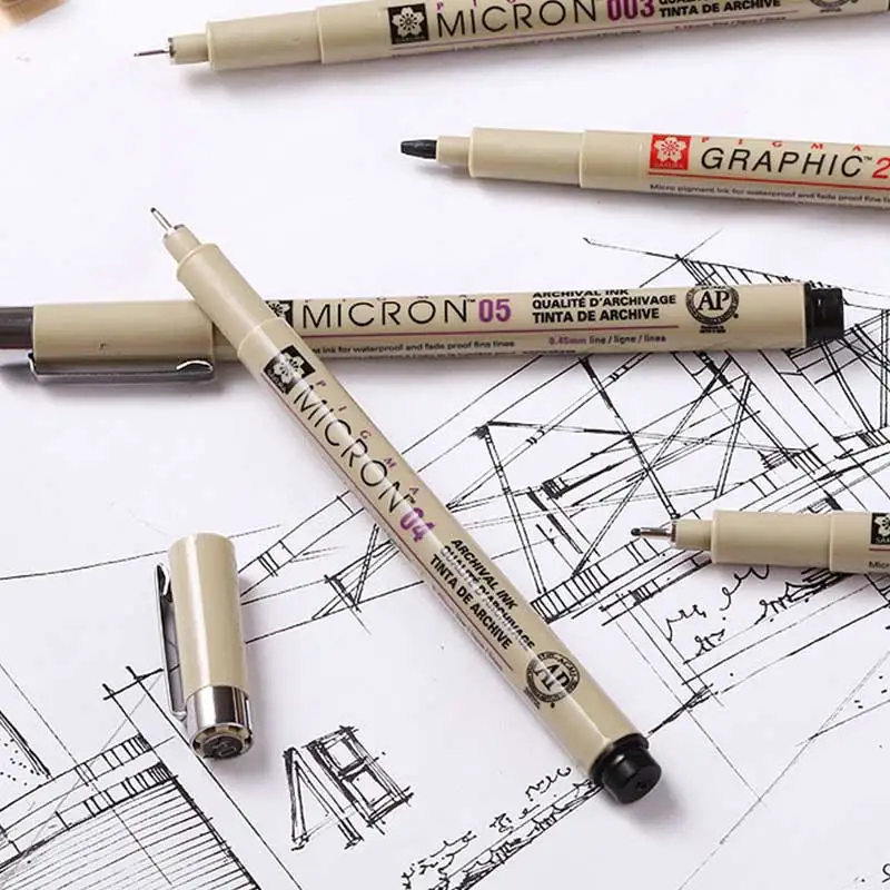 Набор художественных маркеров для рисования, 3 шт., ручка для рисования 1, 2, 3, 003, 005, 01, 02, 03, 04, 05, 08, 10, BR, тонкая подводка