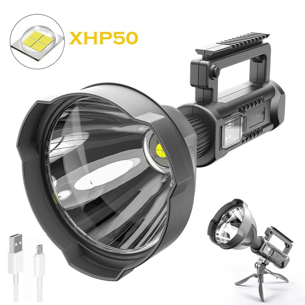 Суперъяркий поисковый фсветильник рь, тактический перезаряжаемый карманный точечный фонарь, светодиодный фонарь, фонасветильник со штативом и USB-выходом, светильник онарь