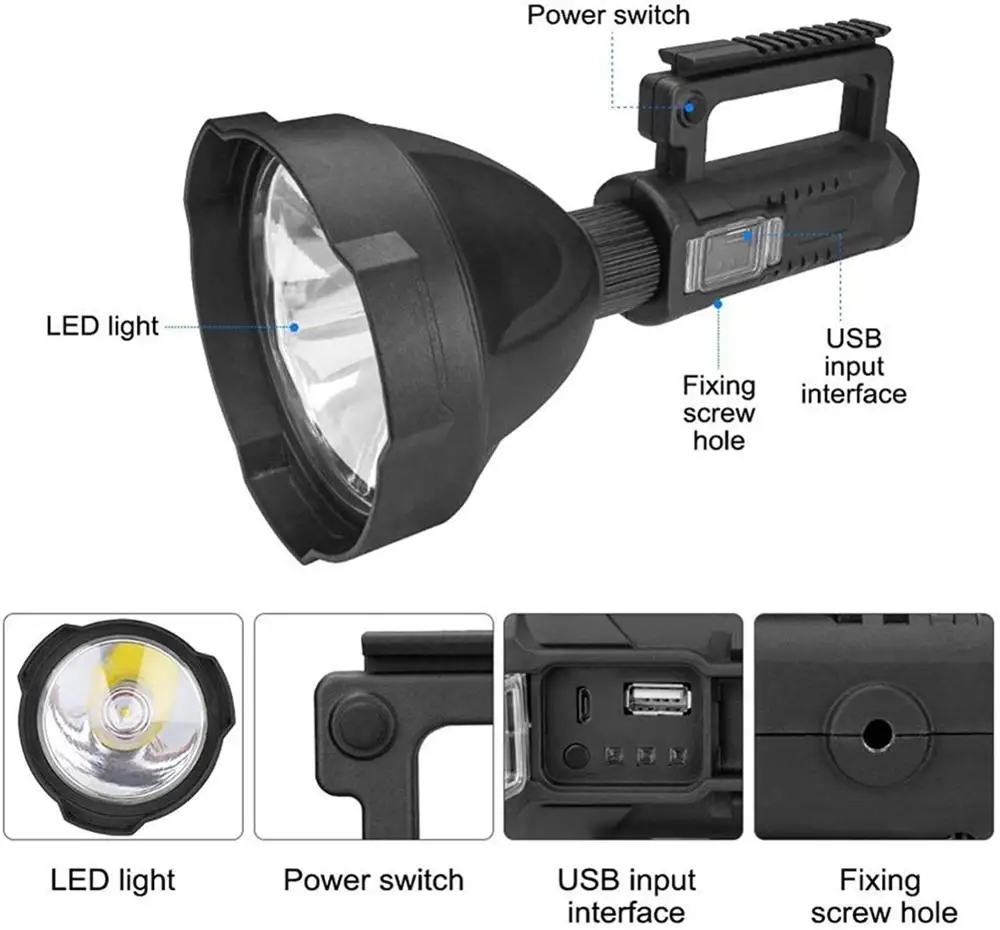 Супер яркий светодиодный светильник для поиска, 8000 мА/ч, большой объем, светодиодный светильник для вспышки, портативный Точечный светильник, аварийный, с монтируемым кронштейном, USB выход, рабочий светильник