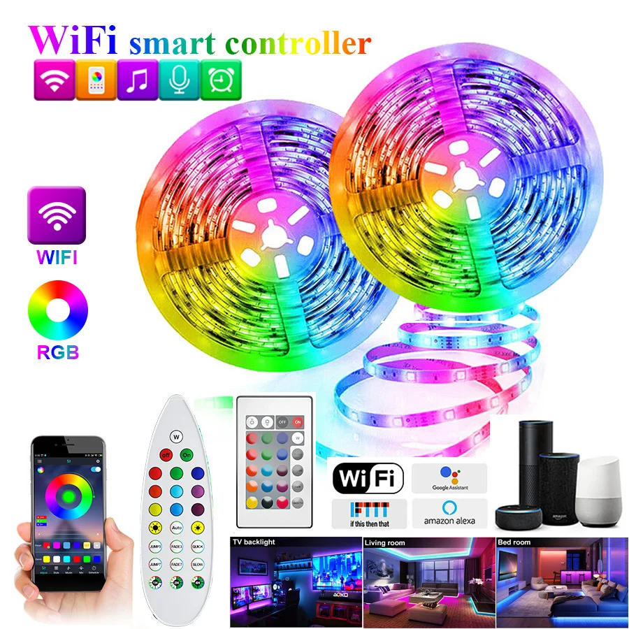 Светодиодные ленты 5050 RGB светодиодные ленты для комнаты 2835 гибкая лента диод Wifi телефон приложение управления 5 м-30 м с адаптеромОсобенности продукта:1. Превосходный правый 5050 SMD светодиодный, высокая интенсивность и надежность.2. Длительный срок службы 60000 часов3. Продолжить длину, упаковано с 5 метров.4. Гибкая Кривая ленты вокруг кривых5. Полностью гладкий и ровный диффузный светильник, решение проблемы с неровным светильник6. Ультра-яркий, но работает при недостаточной температуре7. Низкое энергопотреблениеПрименение:1. Идеально подходит для украшения строительных линий, ландшафтного освещения, тематических развлечений,2. Праздничный светильник, декоративная фигура, активные знаки, дисплеи, витрины3. И витрины, бар, дискотека, улица, тротуар, мост, парк, крыльцо, лестница, перила, потолок, ovialetto.