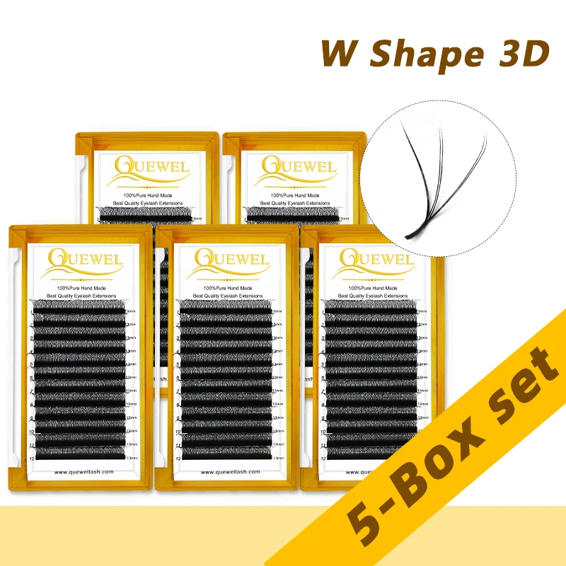 5 коробок, W-образная форма, накладные ресницы Quewel, готовый объемный веер, 8-15 мм, двойной наконечник, W Style Invividual, искусственные норковые ресницы, новинка