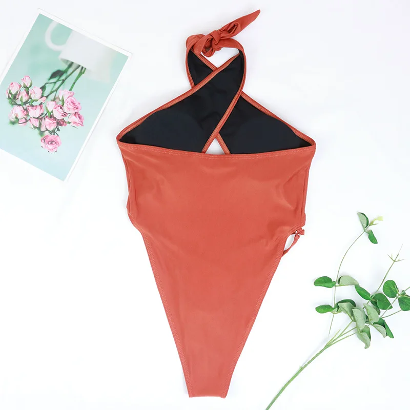 Сексуальный Монокини с высоким вырезом и перекрестными лямками на шее, женский купальник, однотонное бикини с открытой спиной и пуш-ап, женский купальный костюм с вырезами, бикини