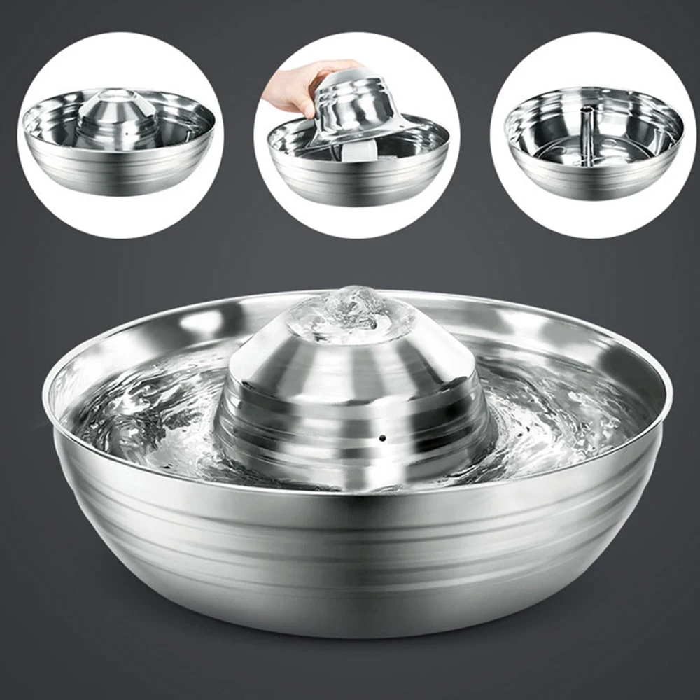 Питьевой фонтанчик для домашних животных из нержавеющей стали, поилка для собак и кошек, 2 л, бесшумная автоматическая поилка для кошек