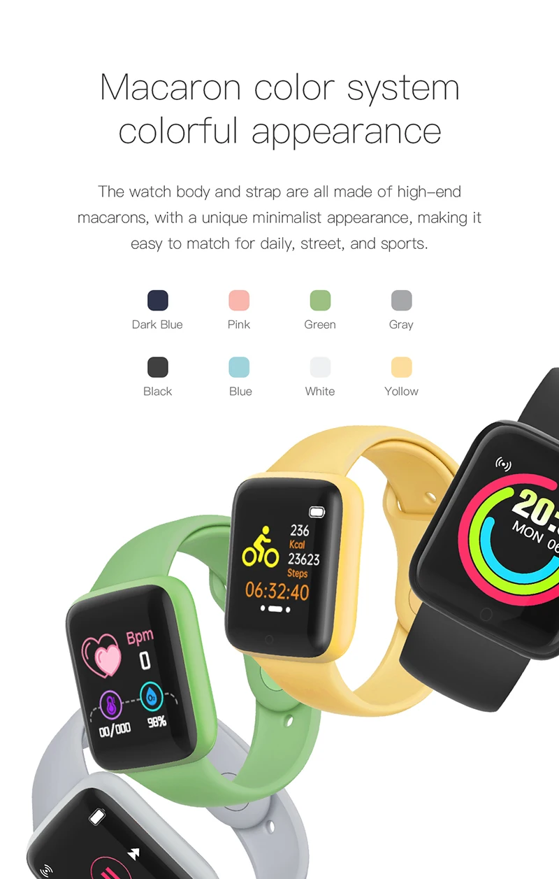 Водонепроницаемые Смарт-часы Y68 D20s с пульсометром и тонометром