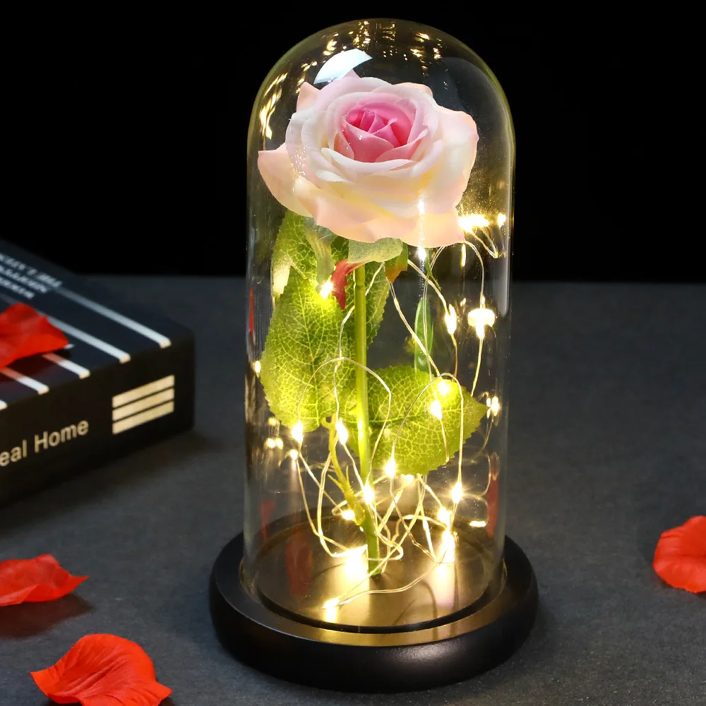 Искусственная вечная чудовище, красивая роза, цветок в куполе, светодиодный подарок на Рождество, день рождения матери, День святого Валентина