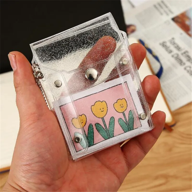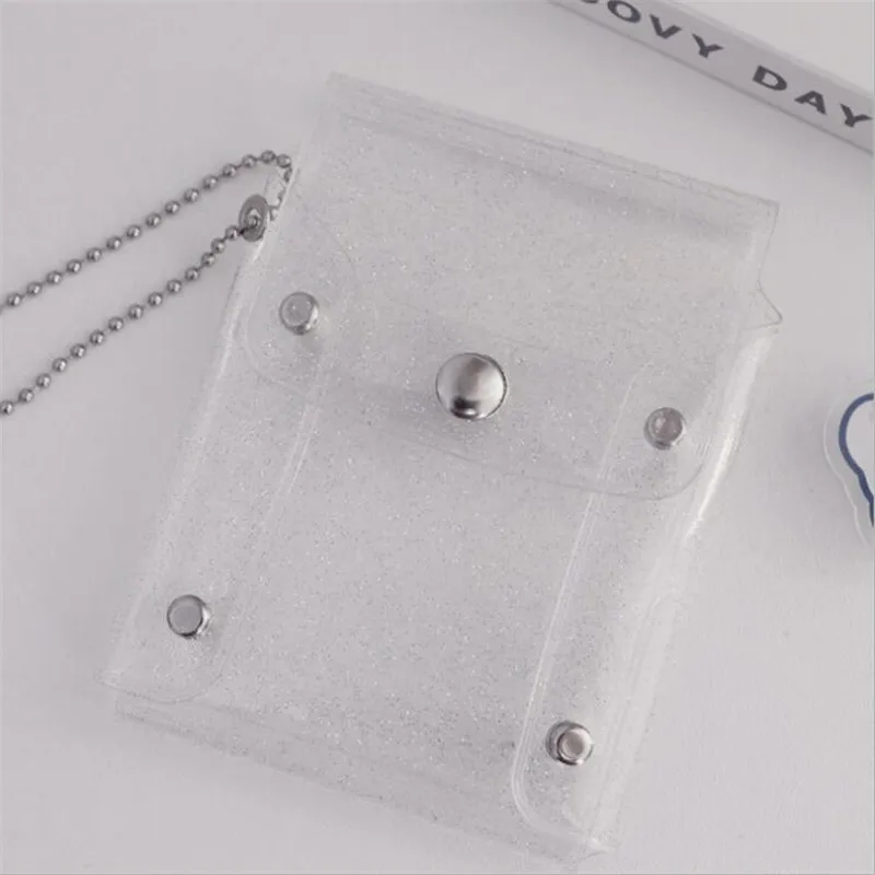 Новый прозрачный Кошелек для монет с блестками, сумка для губной помады, милый розовый кошелек с цепочкой для ключей для девушек, Модные прозрачные мини-сумки из ПВХ с застежкой