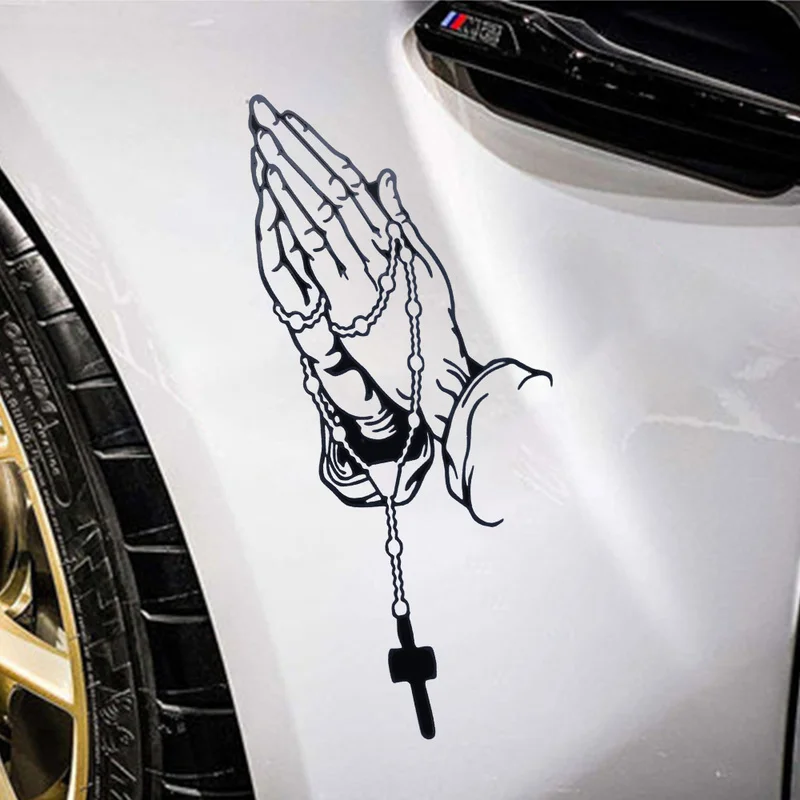 Автомобильные молитвенные жесты, лазерная наклейка, Бог, Иисус Христа, персонализированные четки, украшение для автостайлинга, наклейка s, задняя зерна