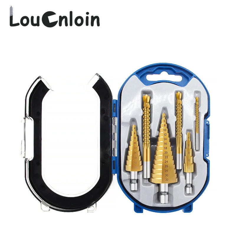 Набор ступенчатых сверл, комплект из 6 насадок из быстрорежущей стали с титановым покрытием, 4-32 мм, для работ по дереву и металлу