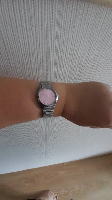 Красивые часы. Очень элегантный и Серебряный-это нейтральный цвет, который подходит к любому образу. На данный момент он работает хорошо, и я надеюсь, что аккумулятор хороший, поэтому он будет продолжать работать в течение длительного времени. Часы прибыли в защитную пленку, поэтому я получил ее в идеальном состоянии. Мне нравится, как часы закрываются, ремешок слишком длинный, но я уверен, что Часовщик укоротит его без каких-либо проблем.