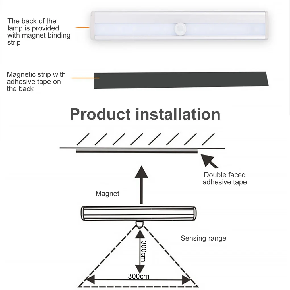 10 24 светодиода под шкафом Ночной светильник с датчиком движения светильник для шкафа кухонный светильник для спальни настенный светильник с магнитной полосой