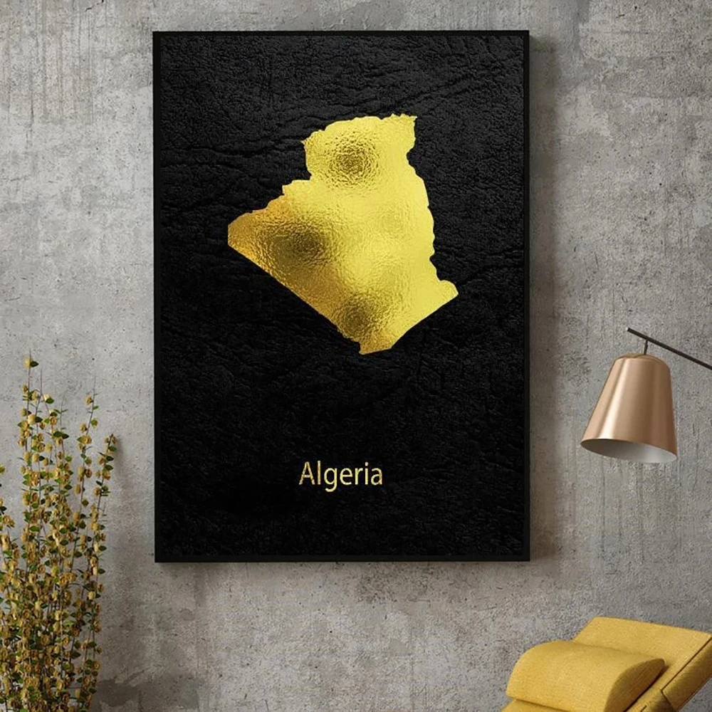 Золотая карта Алжира, холст, живопись, настенное искусство, современные деревенские путешествия, плакаты и принты, картины для гостиной, украшение для дома