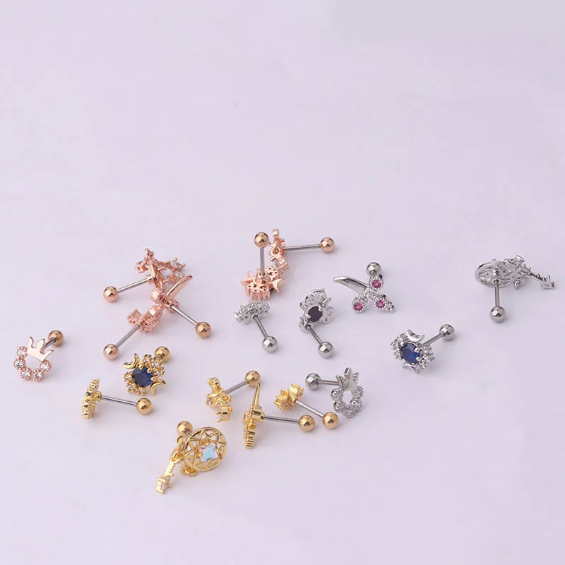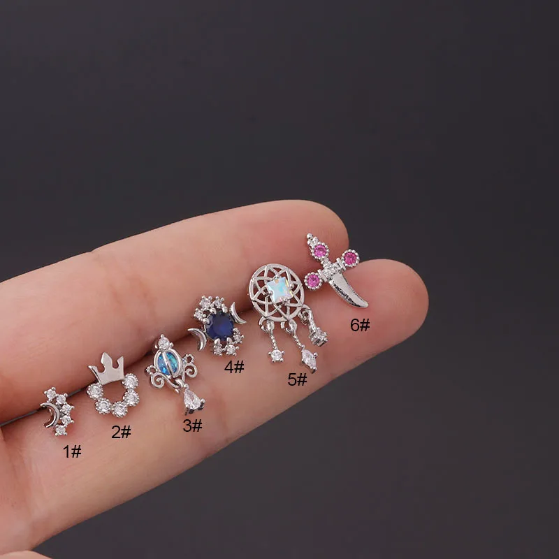 Женские серьги-гвоздики из нержавеющей стали, с цирконом и короной