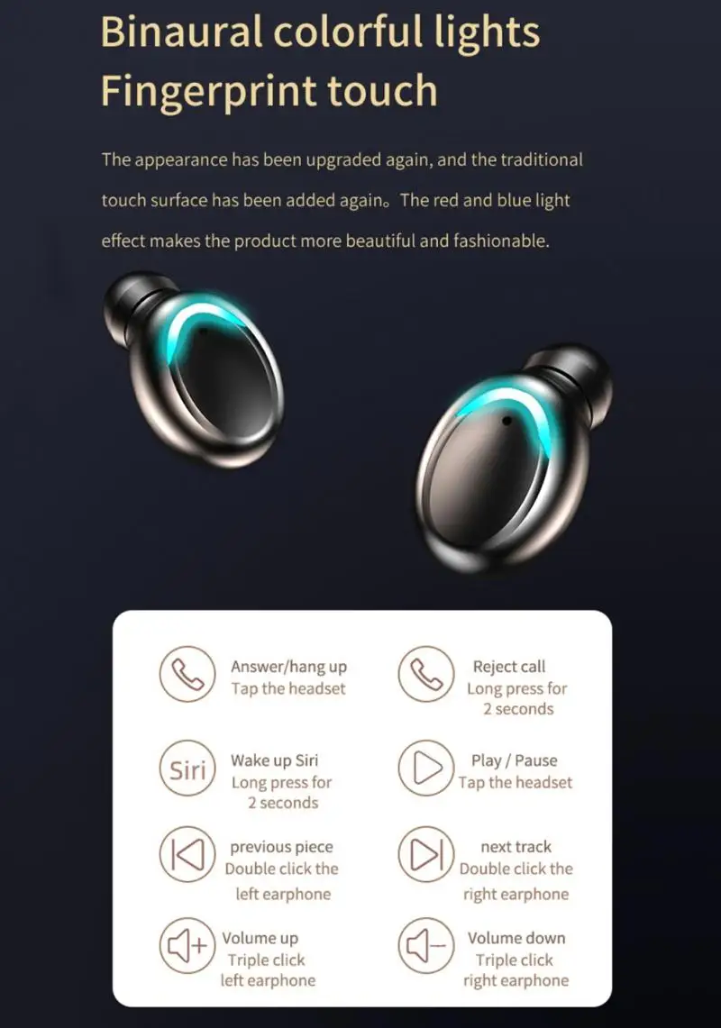 Введение функции: Переключение вверх/вниз песни. Ответить/повесить, отклонить входящий вызов, воспроизведение конечного номера, вызов siri/Android голосовой помощник, одиночный и двойной режим уха