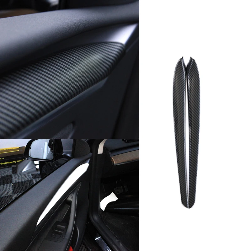 2021 новая модель Tesla 3 отделка двери из углеродного волокна ABS аксессуары для интерьера модель Y 2021 защитная полоса для украшения двери наклейки