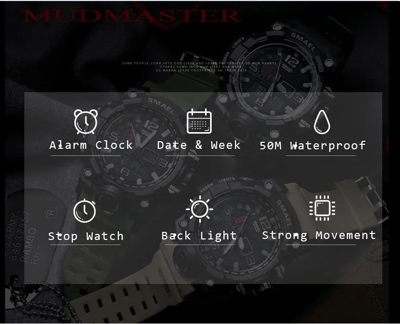 Часы SMAEL с двойным дисплеем, мужские, водонепроницаемые, светодио...