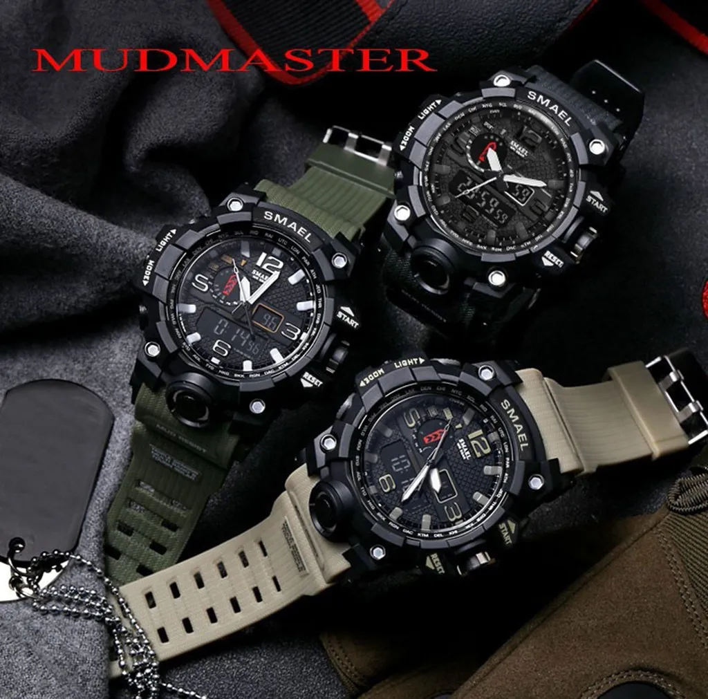 SMAEL мужские спортивные часы, Двойные цифровые часы, 1545 5ATM вод...