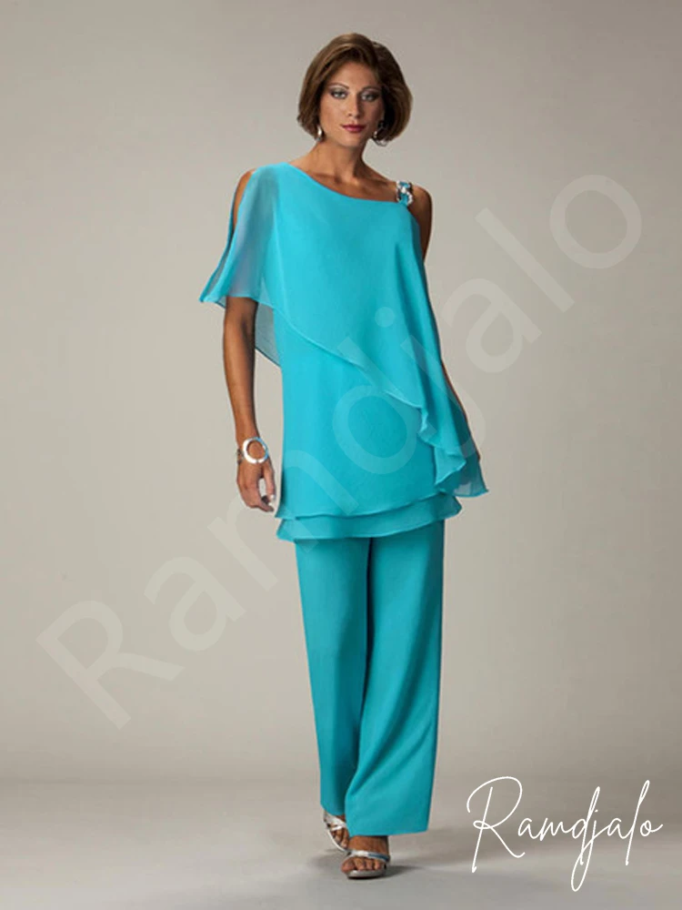 Платье для матери невесты и жениха, свадебные синие шифоновые брюки с одним рукавом, несколько рядов, 2022