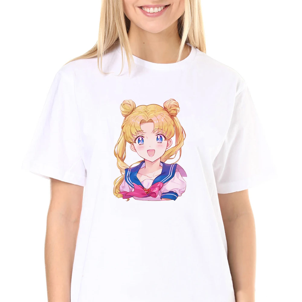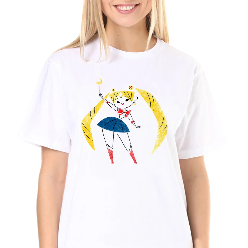 Футболка Сейлор Мун новинка Женский Топ Футболка Harajuku винтажная Милая забавная графическая футболка Hispter свободная крутая красивая футболка Повседневная